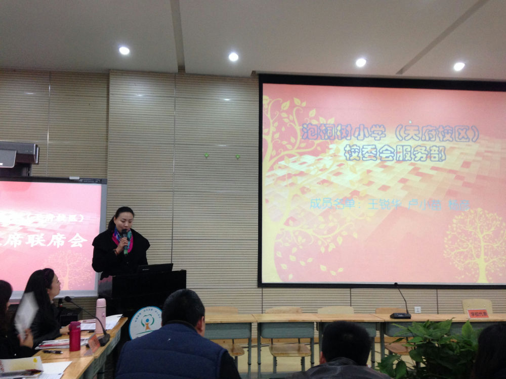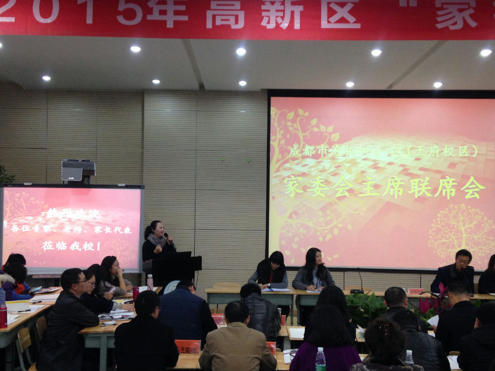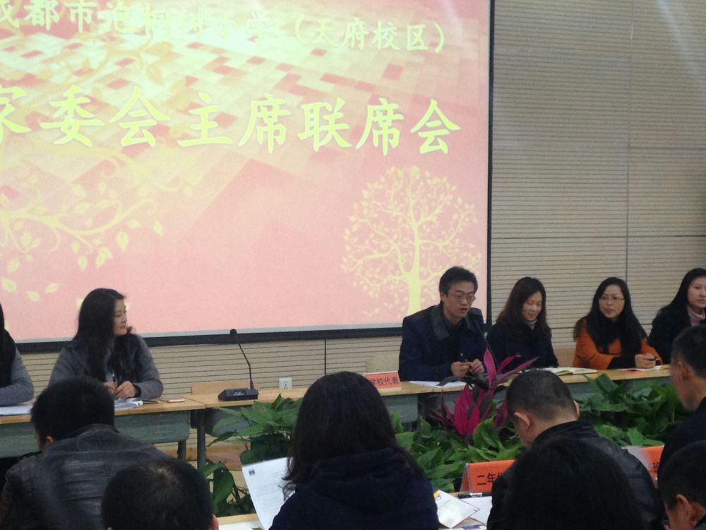 2015年12月3日,在成都市泡桐树小学(天府校区)召开了全校班级家委会主席联席会。这次的联席会既是我校家委会工作的例会,又是一个共谋发展的盛会!会议中,我们共同回顾家校共育工作的发展历程,规划下一步的发展工作,展望了家校共育工作的美好前景。