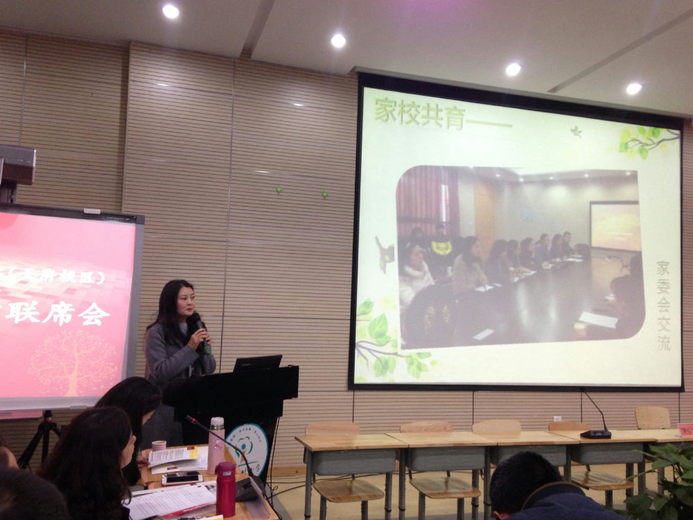 接下来,校级家委会各个部门常务委员对自己的部门职能与工作进行了回顾与介绍,校家委会副主席雍梅女士娓娓道来,为大家讲述了一个关于孩子教育问题的小故事。校级家委会自2013年成立以来,秉承学校“为每个孩子最大可能发展负责”的教育理念,通过饱满的激情,创新的思路,务实的作风搭建起家长与学校沟通交流的桥梁和平台,促进家校和谐,帮助孩子健康快乐地成长做出了巨大的贡献。