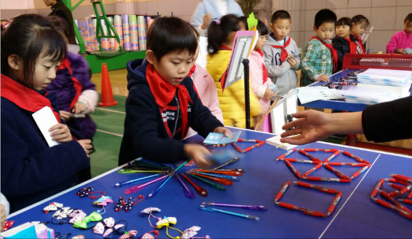 进入初冬时节,金黄色的银杏叶在冬日里显得温暖而醉人,和煦的阳光下,每一片树叶都金光闪闪,微风拂过,落叶上下翻飞,满眼的金黄让人沉醉。数学超市也在这时节为二年级的小泡泡们陆续开放。