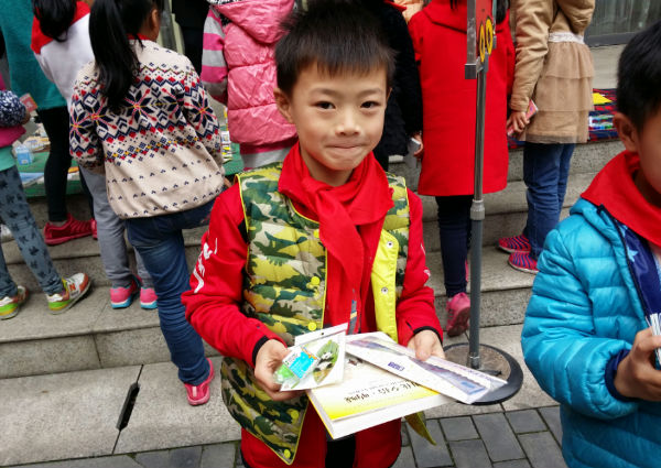 终于,孩子们挑选到了自己满意的商品,该付钱了。哈哈,这学期刚刚学过《元、角、分》,付钱对孩子们来说根本不在话下,能把课本上的知识运用到生活中来,赞一个!