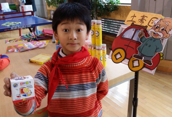 此时此刻,二年级的4位数学老师早已将花样繁多的商品精心上架,等待着小顾客的到来!超市有1元区、2元区、3元区、5元区、8元区,还有孩子们平时就心仪的商品摆放在土豪区呢!不过土豪区是智慧老爷爷把守的区域,商品的价格可不菲!
