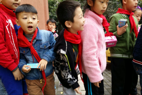 不得不表扬这群孩子,看着人多拥挤,还主动排起队了!不过队伍移动得实在太慢了,那可是会着急的哈!