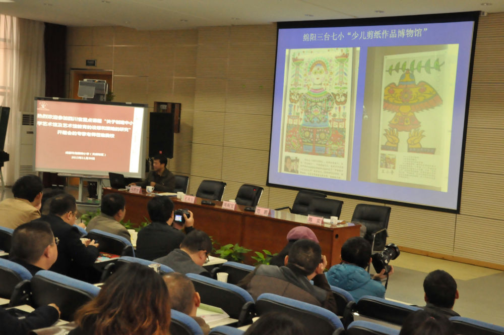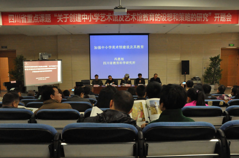 2015年12月1日,四川省重点课题“关于创建中小学艺术馆及艺术馆教育的设想和策略的研究”开题会在泡桐树小学(天府校区)隆重开幕,中国中小学美术杂志主编周殿宝主任、四川省教育科学研究所的理论研究室主任、《教育科学论坛》杂志社王真东常务副主编、四川省美术教研员、四川省教育学会美术专业委员会秘书长、四川省美术教研员冯恩旭老师、成都师范学院陈实教授、成都市泡桐树小学(天府校区)芶鹏校长以及省内各市、区、中小学艺术教育负责人80余人出席开题会。