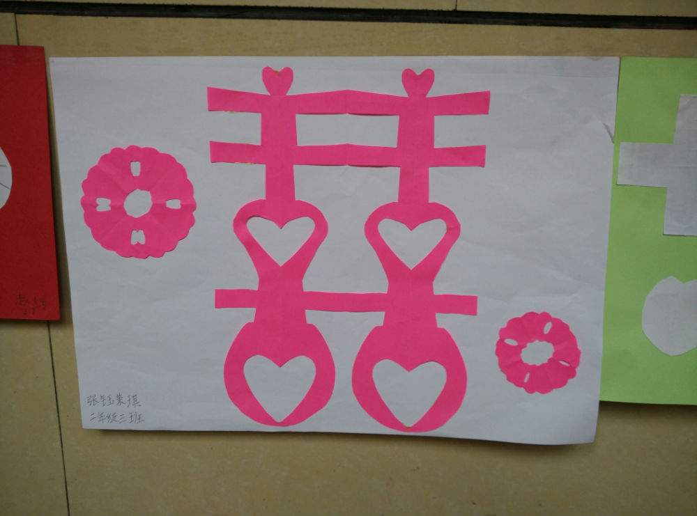 2015年12月2日,我校二年级数学组开始以《剪纸中的轴对称》为主题的学科展示活动,经7个班级全体小泡泡动脑加动手创作的200余幅精美的充满数学气息的作品被粘贴在每班教室外墙上,一幅幅精美作品吸引了同学们驻步观赏,孩子们提高动手操作能力的同时,也感受到了数学的美。