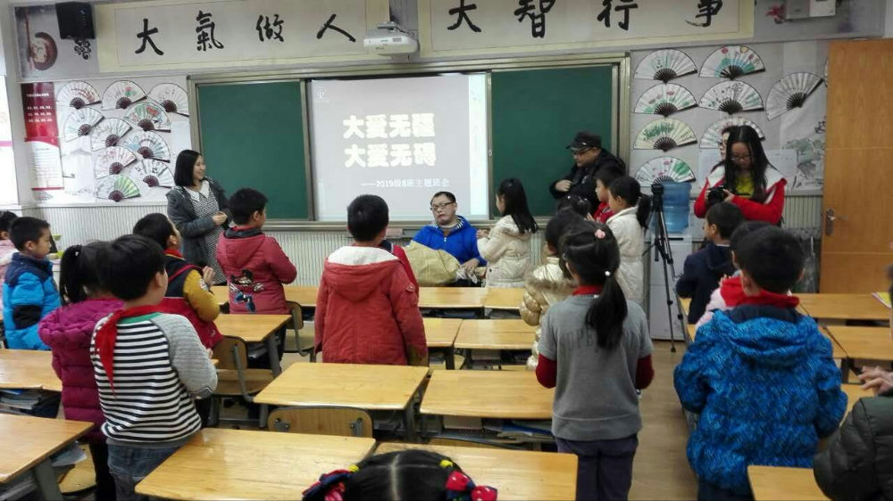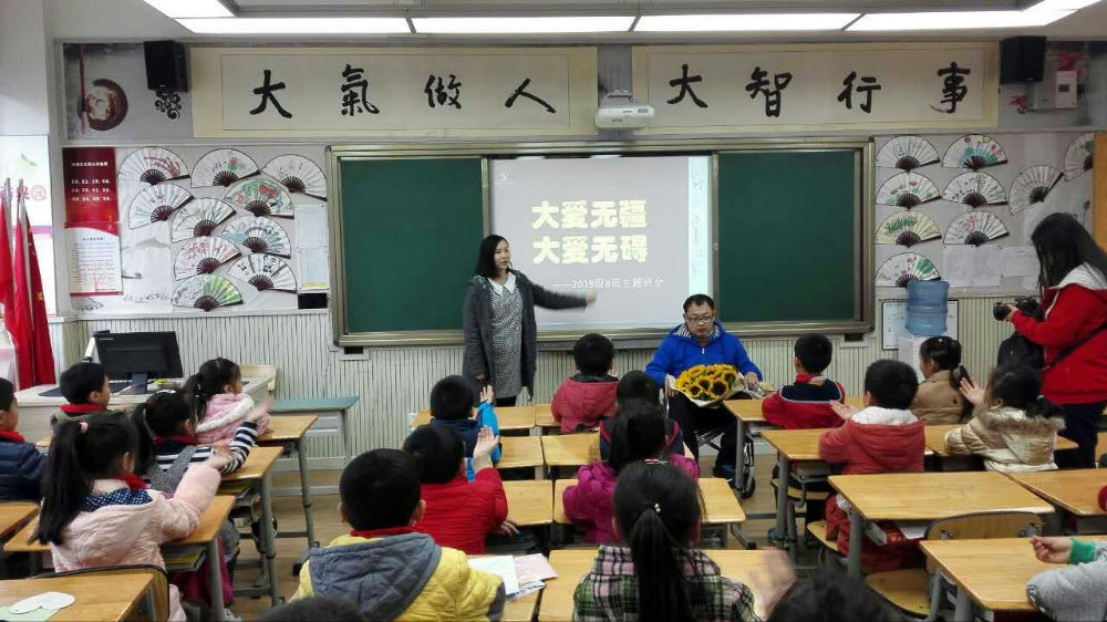 “一个需要被别人帮助的人,反而通过自己坚强的毅力不断学习,帮助了很多人。这次班会,就是向大家传递正能量,让同学们思考自己应该怎么做。” 三八班张盼老师如是说。