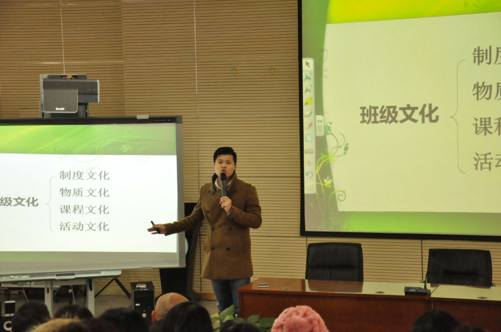 参观结束后,陈冠夫副校长在多功能厅为来访嘉宾开展题为《十分钟的故事》的演讲。演讲中,陈冠夫副校长向来访嘉宾介绍了泡桐树小学(天府校区)的课程、管理、教学、社团的管理经验,并详细介绍了学校在开展校本课程、社团课程的经验与管理模式。在交流中,陈冠夫副校长还回答了嘉宾的一系列教育教学中的问题,陈冠夫副校长结合泡小天府校区的经验,把泡小的管理文化分享给了来访嘉宾,提供一种泡小天府校区的做法和经验。接着由我校周强老师向来访嘉宾们介绍自己班级管理的经验和方法以及分享他管理班级的系列成果。最后周强老师与来访嘉宾进行互动,回答了嘉宾提出的相关问题和解决办法,嘉宾一行对我校先进的办学理念、人文化的班级管理、丰富的班级文化活动等给予了高度评价。