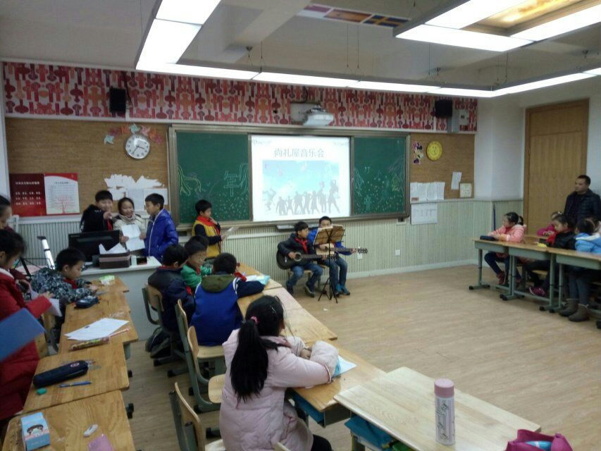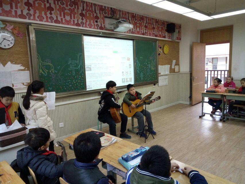 这次班级新年音乐会主要是4-3、4-4、4-5、4-6、5-1、5-2等几个班级在教室和演播厅进行,孩子们表现大方,自信,获得家长们的阵阵掌声,圆满落幕。