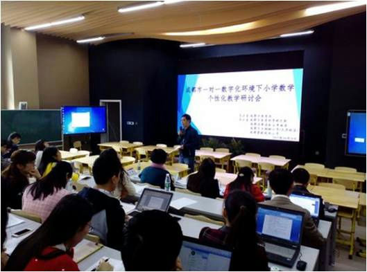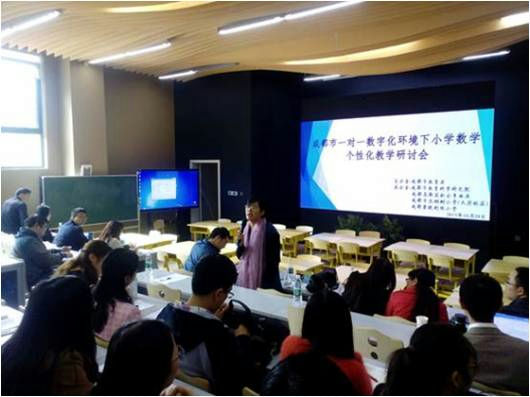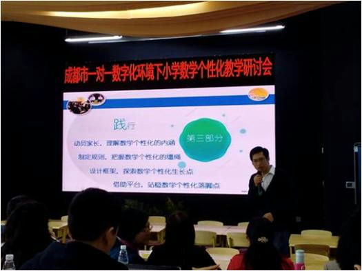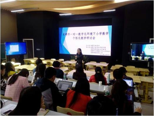 10月28日,由我校承办的成都市“一对一数字化环境下小学数学个性化教学”阶段性成果展示会在成都蒙彼利埃小学举行。会议由成都市教育局主办,成都市教科院、成都市高新区社会事业局、成都市泡桐树小学(天府校区)、成都蒙彼利埃小学承办。来自各区(市)县教研部门、各市直属(直管)学校的分管信息化领导和信息化专人、课题组主研人员及参研教师、相关学校领导及教师等共计170余人参加了会议。