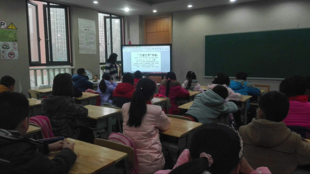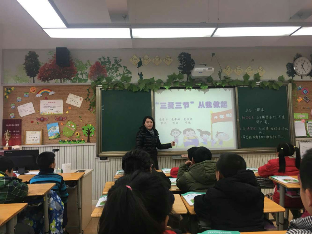随后全校师生统一在教室里进行了开学典礼。雄壮的国歌响起,庄严而肃穆的升旗仪式拉开了新学期的帷幕,典礼上大队辅导员结合社会主义核心价值观提醒全校学生做到“三爱三节”,并加强自己的安全意识和行为规范意识。典礼后,各班在班主任老师的带领下更深入地了解“三爱三节”,并积极讨论如何用自己的行动真正做到爱学习、爱劳动、爱祖国,节水、节电和节粮。