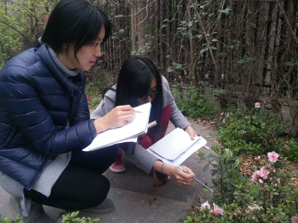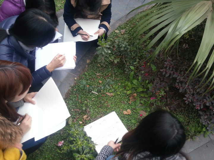 静悄悄地校园,有一群热爱生活、热爱艺术的人聚集在学校后花园,她们在干什么呢?原来,她们正在上户外写生课。