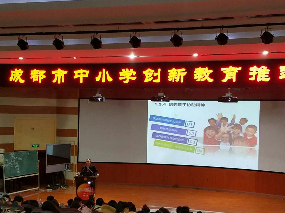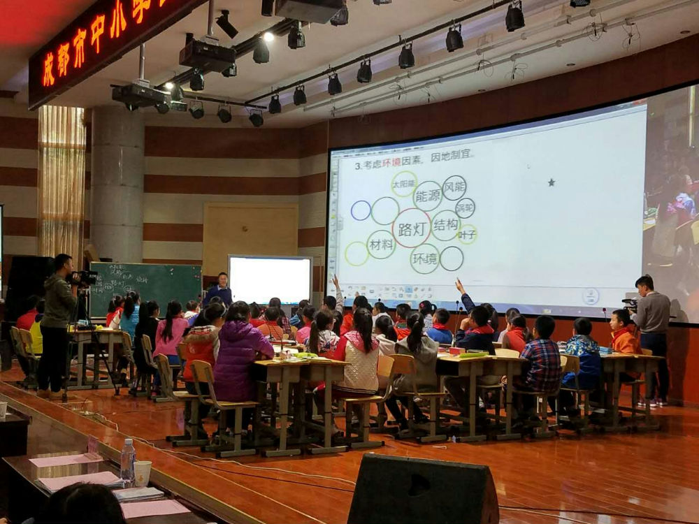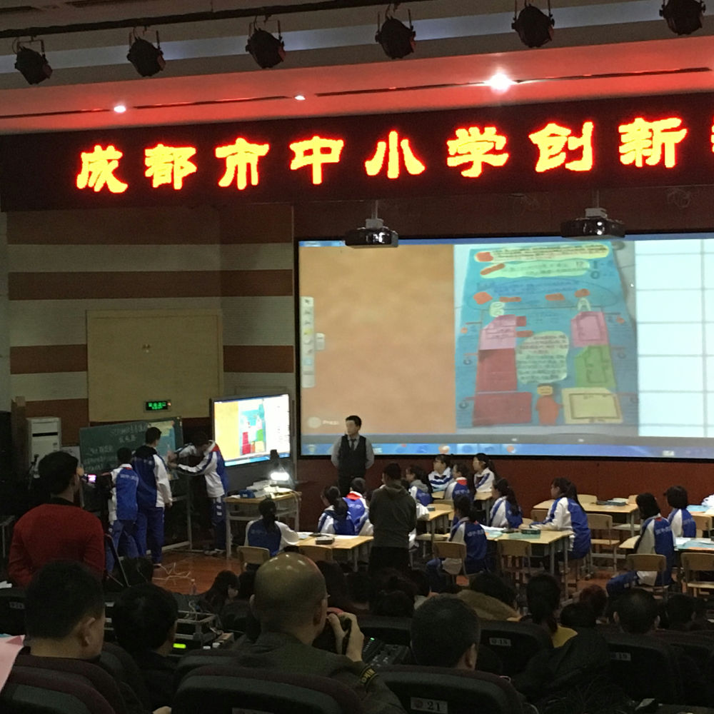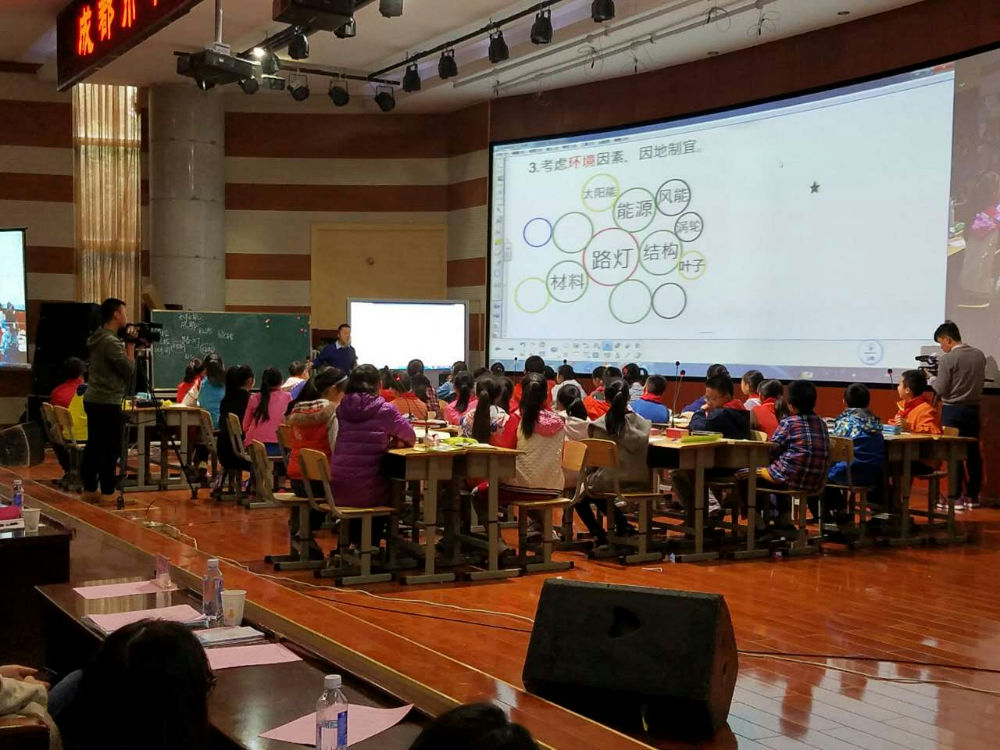 课后四川大学姚进教授对两节课做了专家点评。满天老师的课得到了高度的好评,姚教授提到:这是一节充分体现了发散思维的课,老师激发起了学生无限的想象力;教学从学生的调查结果为起点,整个教学过程充满着学生的争论,让学生在争论中进行设计、修改设计、完善设计。