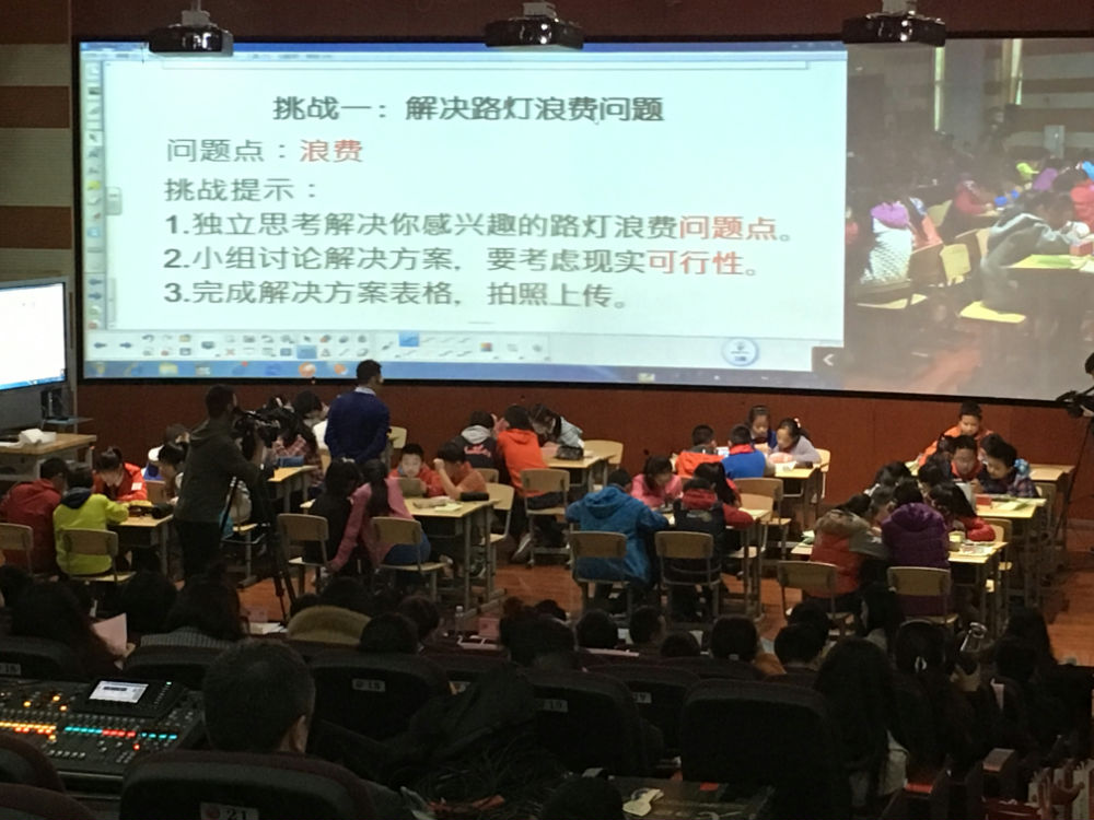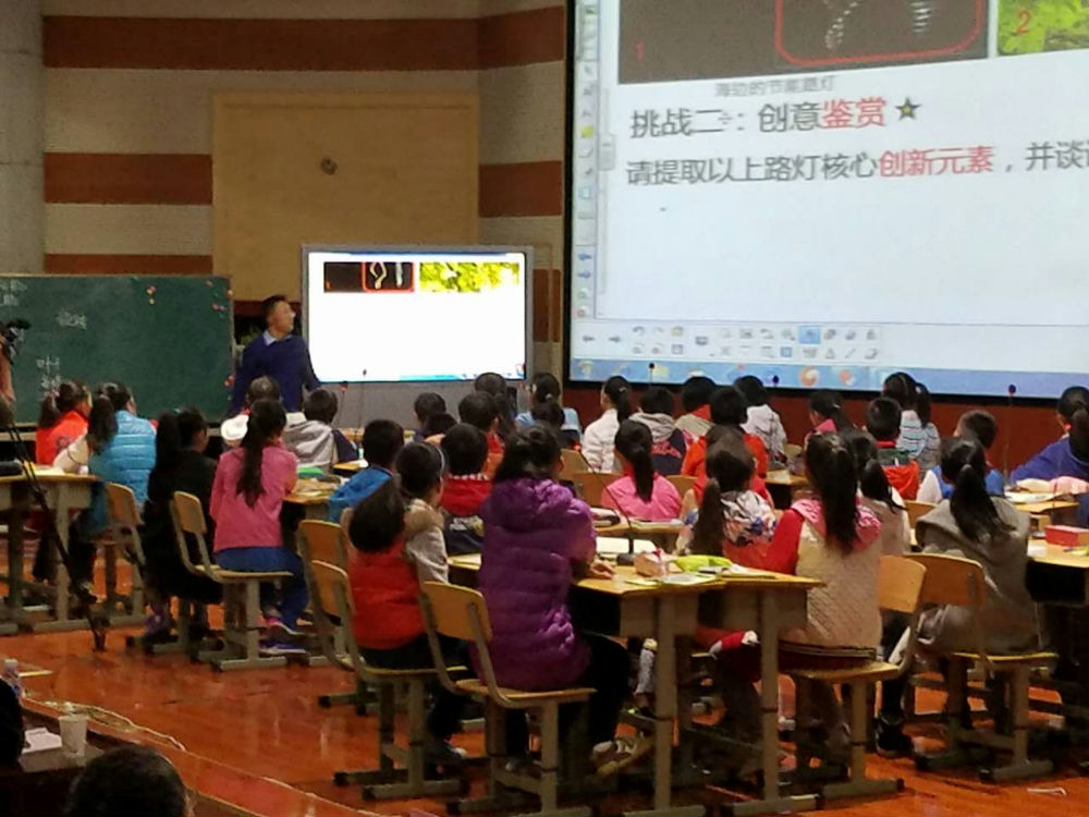 满天老师为我们带来了一节新颖、有趣的创意发明课——《路灯》。首先,满老师以响亮的口号“创意无极限,挑战不可能”开启了这一次的创新之旅。接着,提出了挑战的题目——改善路灯。