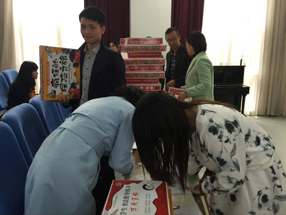首先,主持本次会议的刘珈齐老师介绍了活动开展背景和重要意义,接下来由免费提供图书的负责人介绍赠书主要内容,最后,由班主任们领取各班图书,并对主办方表示感谢。