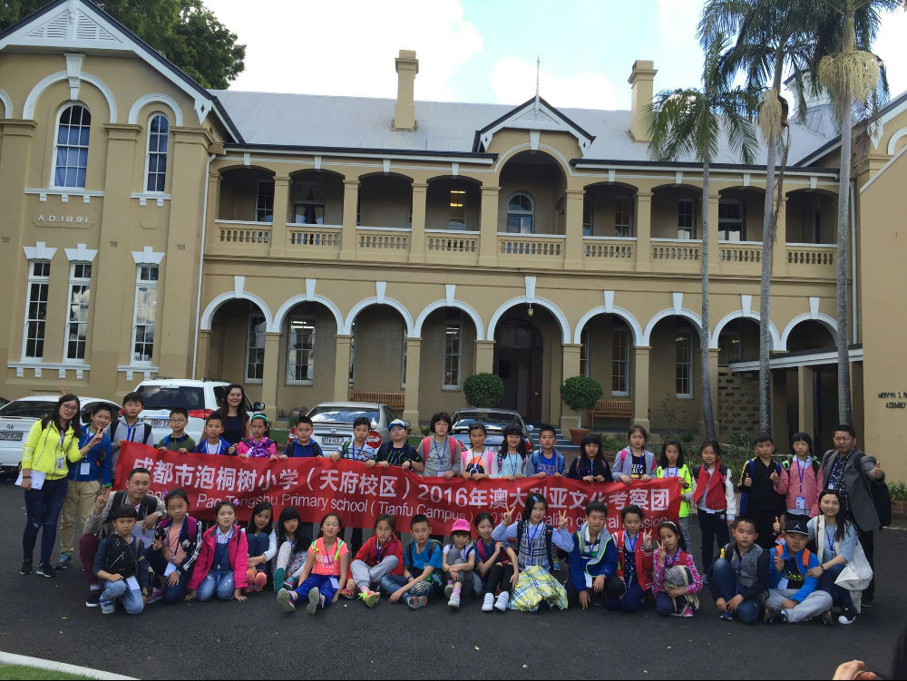 2016年4月19日,应澳大利亚伊普斯维奇文法学校的邀请,成都市泡桐树小学(天府校区)师生及领队共39人赴澳大利亚布里斯班开展为期12天的研学交流活动。本次游学旨在让学生增长知识,开阔视野,提高语言沟通能力,独立自主的能力,及让学生体验澳洲的文化生活。