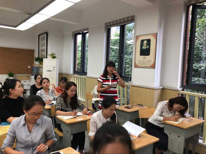 第二个环节是以统编版二年级上册课文《曹冲称象》为备课素材,分年级组依据本年段《课标》的要求设计教学目标,这一次富有挑战性的教材解读形式激发了各组教师的潜能,在15分钟的小组讨论后,各组分享了彼此研讨的教学目标,宋茜校长不失时机地点评和引领让我们对同一文本在不同年段执教,心中有了明确而清晰地认知,受益匪浅。