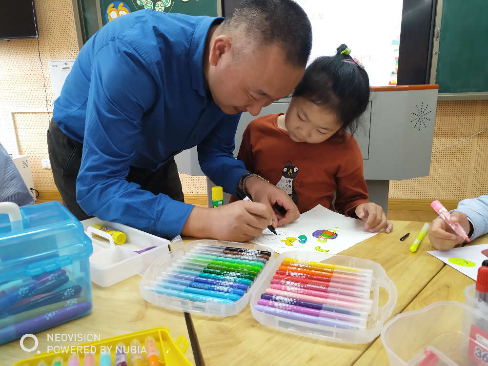 最后,由魏佳丽老师带着一年级的小宝贝展示了一堂生动有趣的课堂《圆的世界》,魏老师用富有创意的教具带领孩子们感受身边圆形的物体,了解圆形的形状特征,表现圆形作品,感受圆形所带给我们的美感。小朋友们在课堂上妙语连珠,逗得大家哈哈大笑。魏老师带领学生在快乐中学习,充分展现了美术强大的育人功能。