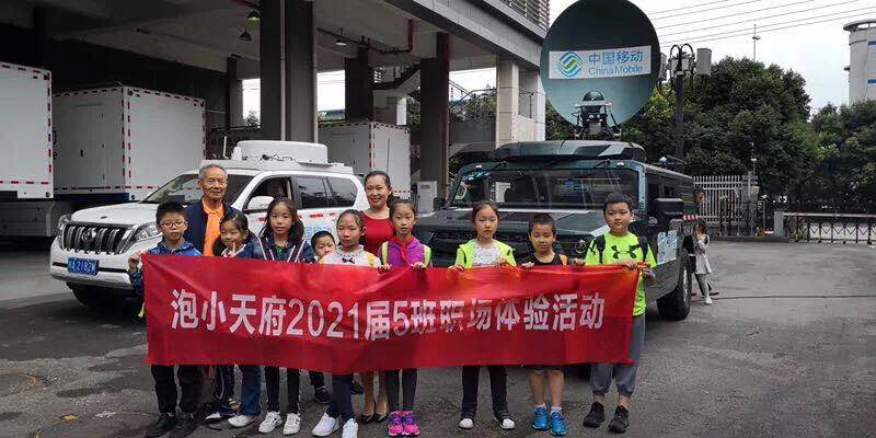 高新西区百草路的四川移动网络监控大厅,通信工程师组正在饶有兴致参观了移动机房。看见网络监控大厅的大屏幕显示屏,同学们都赞叹不已。哇,原来我们使用的手机,都是通过这里的设备在传送,哪里出了故障,就会第一时间在这里被监测发现并发出报警信号。卫星通信应急通信车太强大了,哪里有险情,哪里有重要活动,就立刻奔赴第一现场,立下汗马功劳。