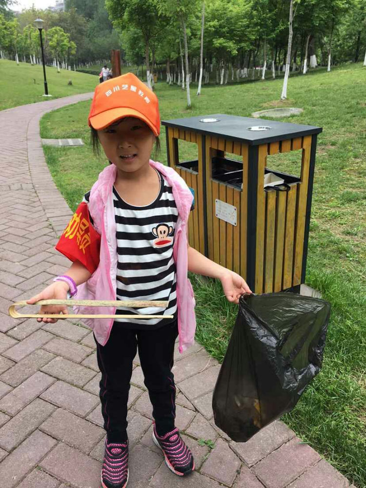 “保护环境,从我做起”。4月28日,泡小天府一年级四班的同学们开展了“锦城公园环保小卫士”活动。小卫士们一大早各自带上环保垃圾袋、自制竹夹子和筷子等工具在锦城公园门口集合,统一佩戴好“文明劝导员”的臂章和太阳帽后分五组行动,对锦城公园内的道路及两旁的草坪进行垃圾捡拾清理,对影响环境卫生的不文明行为进行劝导。