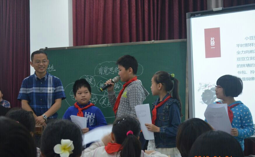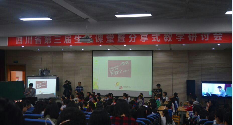 2016年4月下旬,四川省第三届生态课堂暨分享式教学研讨会(语文)在成都市泡桐树小学(天府校区)举行。出席本次会议的专家有教育部中学骨干校长、语文特级教师“师之蕴工作室”领衔者关景双老师;有原教育部北京师范大学基础教育研究中心副研究员、分享式教学理论创始人任景业老师;有成都市教育科学研究院小学语文教研员罗良建老师;我校副校长宋茜老师。会议包括3节研究课、2场专家讲座,会议的主题是:生态课堂、分享式教学、学力发展。来自省内外共计五百余人参加了会议。