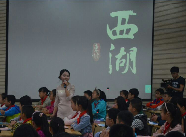 第二节由成都市花园国际学校的黄莺老师和五年级三班的小泡泡们带来的《相遇西湖》。古典婉转的乐曲,空蒙潋滟的画面,声情并茂的朗诵,那闻名于世的西湖美景便在黄莺老师的课堂上展现淋漓,在坐的师生无一不沉浸在那如诗如画的美景之中,久久回味……