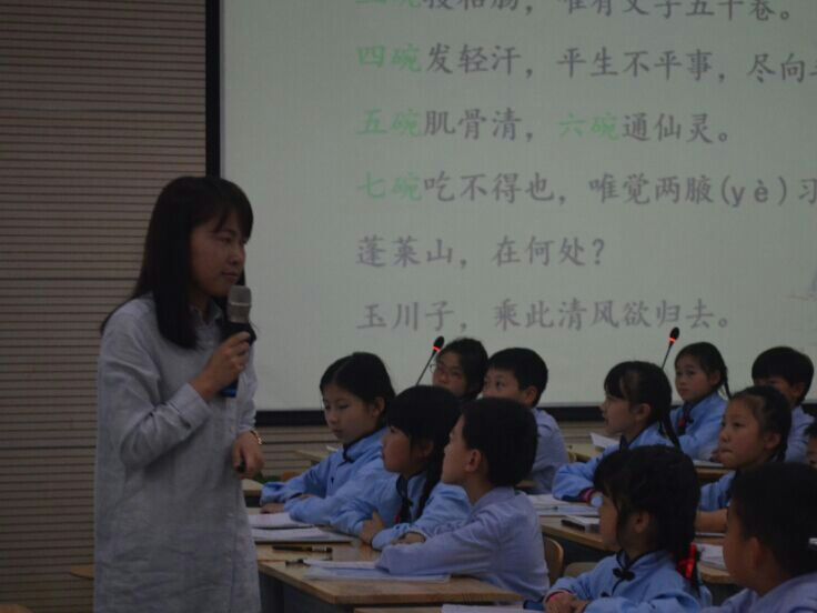 第三节则是由玉林附小的王茜老师和玉林附小四年级二班的孩子带来的《茶——一片树叶的故事》。王老师以“茶”为纽带,一头系着中国传统文化之经典,一头系着生于现代之童蒙,用一首首与茶有关的诗把他们紧紧地连在了一起。整堂课书声琅琅,古韵流荡,孩子们“话茶”、“读茶”、经典与文化就这样慢慢地浸润在孩子们心里……