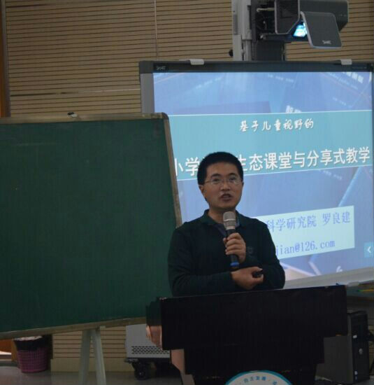 下午,罗良建老师也做了一堂精彩讲座。人法地,地法天,天法道,道法自然。罗老师认为,我们“生态课堂”就是自然的、尊重生命且富有生命力的课堂。要想打造“生态课堂”,我们的小学教育必须在儿童视野下行进。在我们的课堂中要学会用儿童眼光观察世界,以儿童的思维理解世界和感受世界,我们要带上儿童的经验,关注儿童的关注,快乐儿童的快乐,幸福儿童的幸福。那么我们的课堂才能真正地说得上道法合一,自然生态。