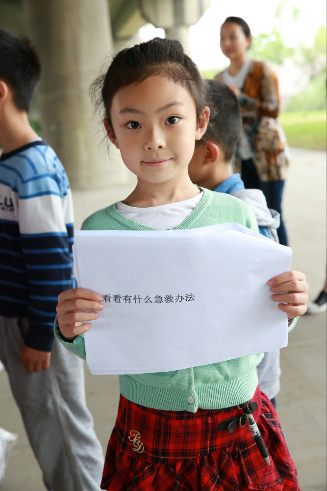 4月29日上午,在汪老师、唐老师和家长志愿者的组织下,一•八班小朋友们来到了美丽的锦城湖畔。汪老师先带着小朋友们玩了水果蹲的游戏,活跃气氛。然后,曾妈妈讲了一个发生在自己家里的安全事故,激发了小朋友们极大的兴趣并开展了激烈的讨论。接着,曾妈妈用简单易懂的语言给小泡泡们详细讲解了手指割伤、鼻出血、扭伤、骨折的简单处理、心肺复苏以及急救电话拨打的要点和技术手段,并邀请了小朋友们进行互动演习。