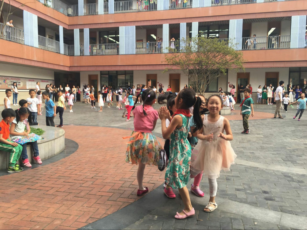 接下来是课间休息时间。运动和韵律的结合,是孩子们自我放松,自我调节的开心时刻,家长们也一起跟着节奏动起来,好像又找回了儿时的记忆。
