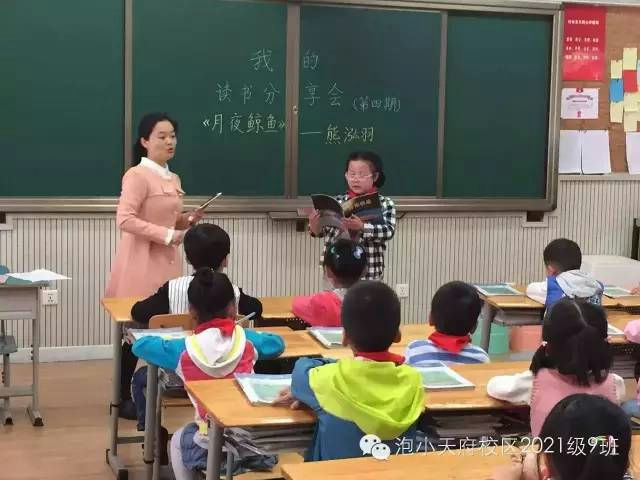 对于周一上午的读书分享会,熊孩子明显很焦虑,周末在演练过程中还提出要打个电话给周老师问问能否不上去讲。我也很焦虑,做父母的都希望自己孩子是最棒的那个,结果她却要临阵脱逃,这是要整哪样?周末的晚上我睡得很不好,各种各样的梦,梦到熊孩子分享顺利的,不顺利的,唉,周一的上午到来了,当周老师在黑板上写下漂亮的读书分享会介绍文字时,我很紧张,我不知道熊孩子接下来会怎么样,还好,她有点小羞涩,但还是在老师的鼓励下勇敢地站在了台前,台下的小伙伴们也凝神静气,在周老师的口令下,挺直背,放好手,充满期待地看着熊孩子。