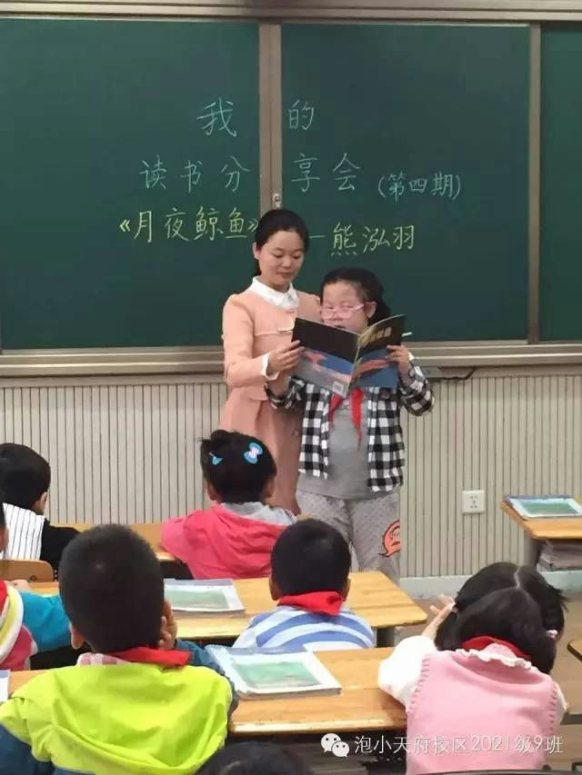 面对这些问题,熊孩子用自己的语言简单作答,小伙伴们也有礼貌的向熊孩子表达了感谢之意。孩子们喜欢这个故事,他们喜欢里面的鲸鱼。是啊,孩子的世界多么奇妙,他们有自己的语言,他们有自己的节奏,放松一点吧,别用自己的情绪代替孩子的成长,多多欣赏和鼓励熊孩子迈出的每一步吧,因为,他们的好朋友——周老师还跟他们在一起呢!对了,熊孩子叫熊泓羽,她分享的故事叫《月夜鲸鱼》,她是泡天小学一九班的一个小泡泡﹕)