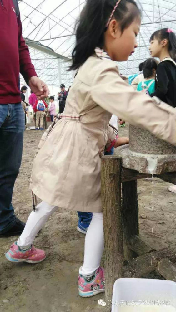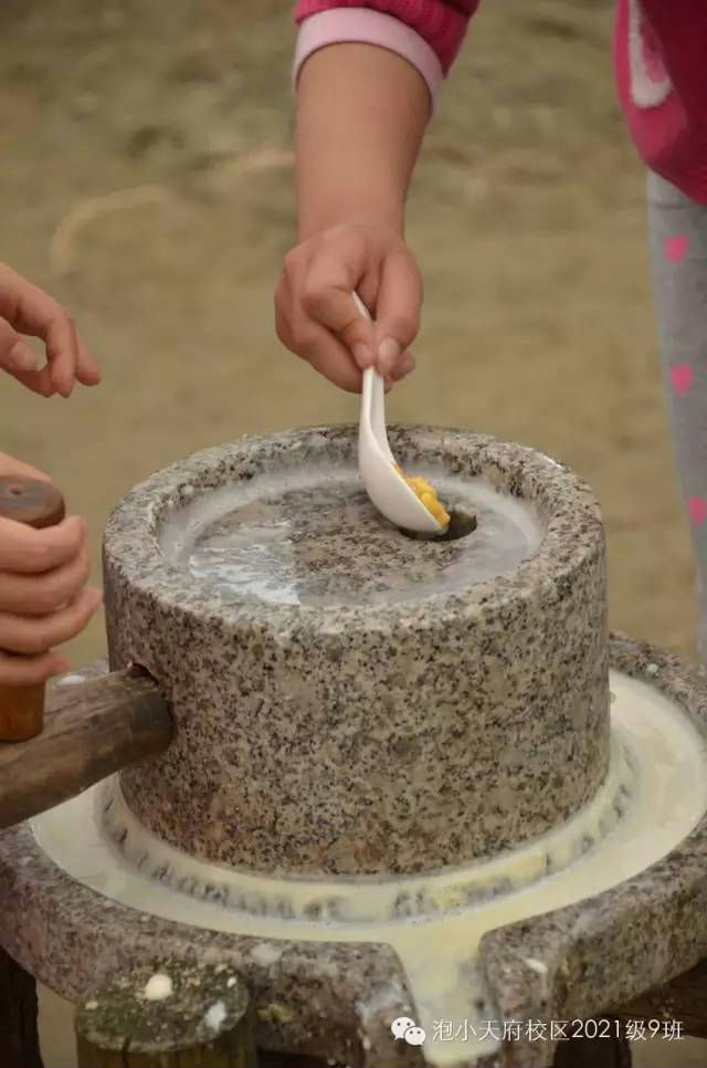 第一项活动-磨豆浆!孩子们瞬间变身武林高手,小马步扎得好,小胳膊抡得圆。为孩子们团结协作、共同努力的优秀品德点赞!
