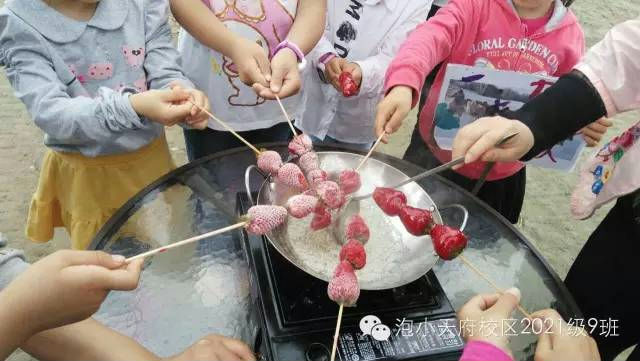 (请看上图)做冰糖葫芦活动让孩子们在品尝美食的同时,也感悟到了劳动最光荣的精神。