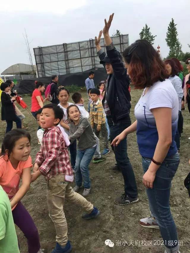 2016年4月29日,泡小天府2015级九班的四十三名小学生和家长组织了一次主题为“热爱劳动,心存感恩”的亲子游活动。大家参观了双流汇众农场,并举行了亲子田间运动会和感恩父母的情感交流活动。