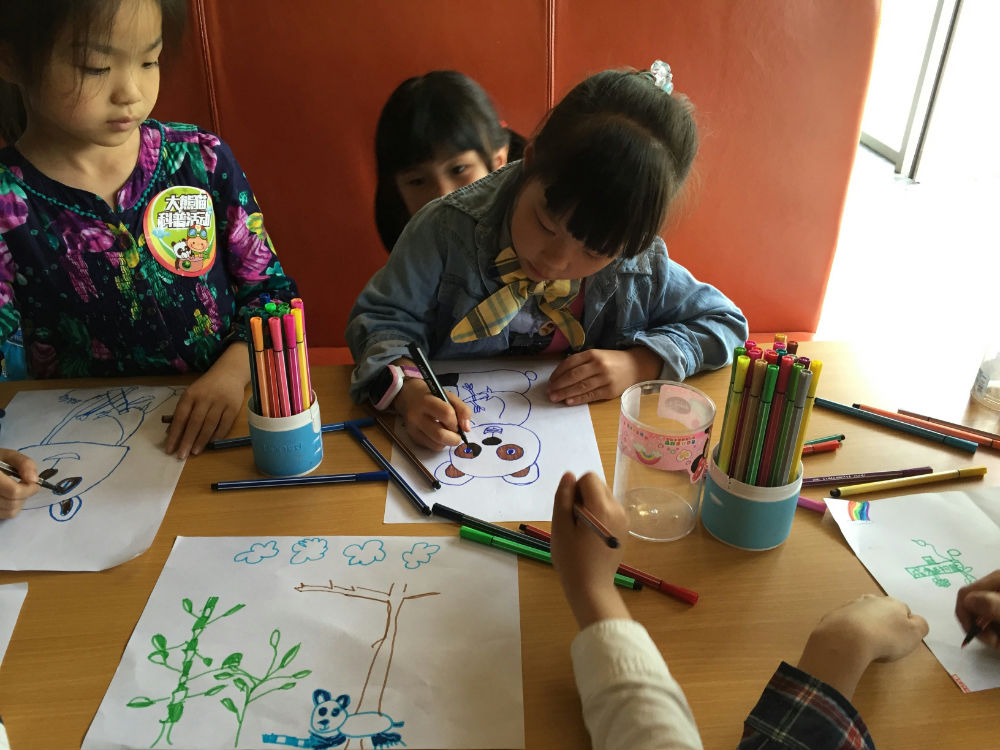 下午,小泡泡们在熊猫影院观看了纪录片《熊猫淘淘》,看到了在邛崃山腹地卧龙的大熊猫草草和淘淘,在动物保护者的帮助下,进行野外驯化,最终踏上了回归自然之路的故事。接着,连老师给大家讲解了大熊猫的生活习性,现场展示了大熊猫的排泄物和日常吃的竹子、竹笋、苹果和窝窝头。小泡泡们争先恐后地提出各种奇怪的问题,连老师都耐心地用专业的语言一一进行了解答。最后连老师带着小泡泡们进行了“我爱大熊猫”的主题绘画,在画中,小泡泡们纷纷表达了对大熊猫的热爱。