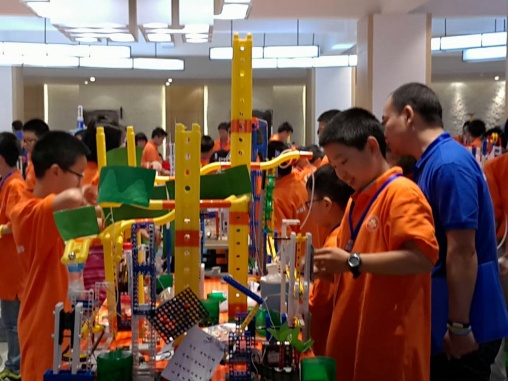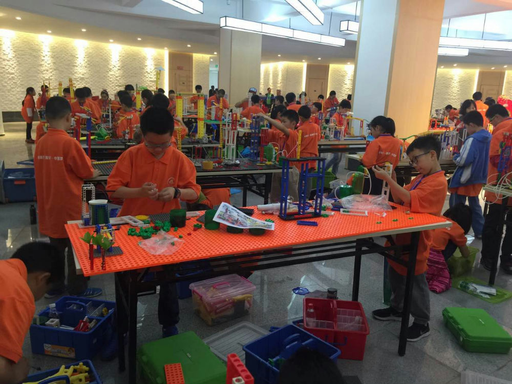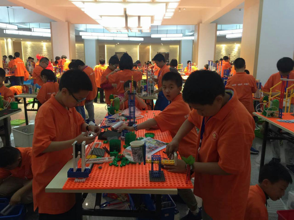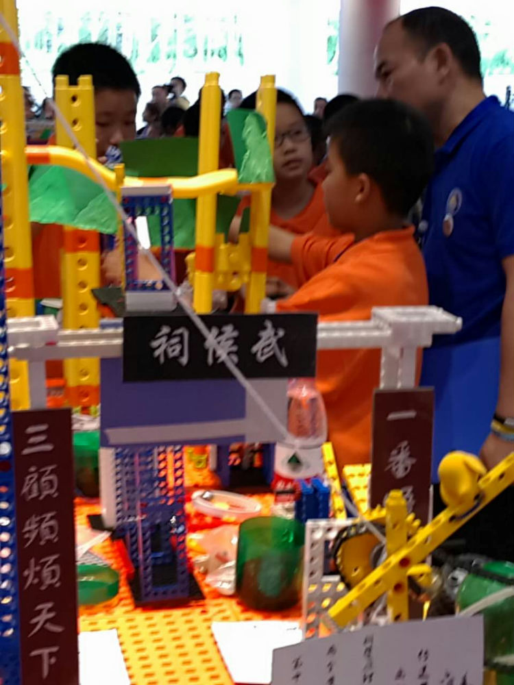 创意闯关组紧锣密鼓的进行拼搭和测试。
