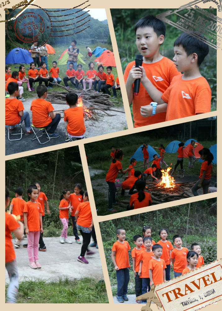 回到营地,孩子们开始快乐的篝火晚会。孩子们争相主持,表演晚饭后排练的各个节目,合唱、舞蹈、健美操、讲故事、猜字谜……他们笑着、叫着、跳着,在篝火的映衬下,内心的喜悦、露营的兴奋全挂在脸上,儿童活泼、纯真的天性展露无遗。时间过得很快,天已完全黑了,孩子们陆续洗漱后,空中已是满天繁星,不远处山林背景下萤火虫漫漫。这让许多久未见此景象的大人们都激动不已,招呼着孩子们一起共同欣赏这山间可遇而不可求的夜间美景。夜渐渐深了,孩子们三三两两都钻进了帐篷,说着小话,听着虫鸣,帐篷中隐隐透出灯光,不时传出轻轻的一阵笑声,一派露营所特有的祥和氛围。