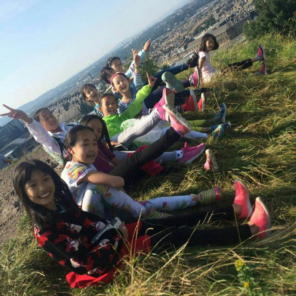 紧接着,孩子们爬山来到了郁郁葱葱的卡尔顿山。在卡尔顿山顶上有着两百年历史的苏格兰国家纪念碑和圆顶建筑的爱丁堡市立天文台。同学们站在山顶西望,爱丁堡城堡巍然矗立,守护着宁静的小城,景色非常美丽。而向东眺望,则可以看到蔚蓝的大西洋和福思湾上的点点白帆;在这景色宜人的山顶上同学们纷纷拿出自己的手机,留下美好的瞬间。