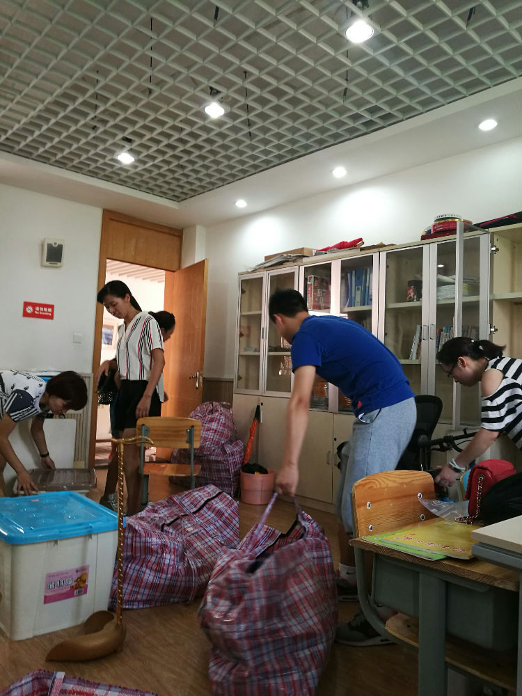 整理收拾完,已到下午,老师们有的累得筋疲力尽,有的汗水湿透衣裳,但看着整齐的房间,洁净的地板,心里依然很开心。