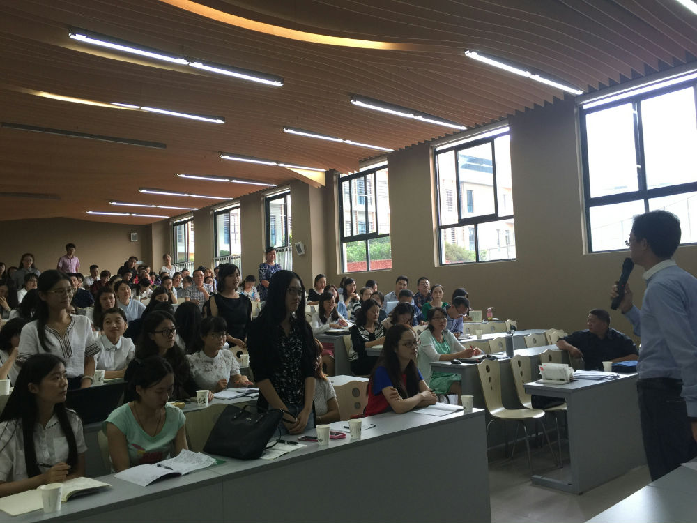 会议伊始,芶鹏校长先从老师们的座位以及会议之前的喧闹说起,强调师德师风建设的重要性。接着抛出第一个关键词:团队。重申“以人为本”的学校精神,重申团队精神的重要性。谈及职业精神、职业归属感,希望老师化压力为动力,提高自己的课堂教学能力、班级管理能力、家校沟通能力,在压力、动力到精神之间搭建一条“不忘初心”的桥梁,高要求的规划自己的职业生涯,将教师这一职业当做自己毕生的追求,更好的实现自己的教育理想。第二个关键词:中国女排。希望全体教师学习中国女排的包容、合作、共享、主动等品质,最终实现团队共赢。然后,他提出了几点具体建议: