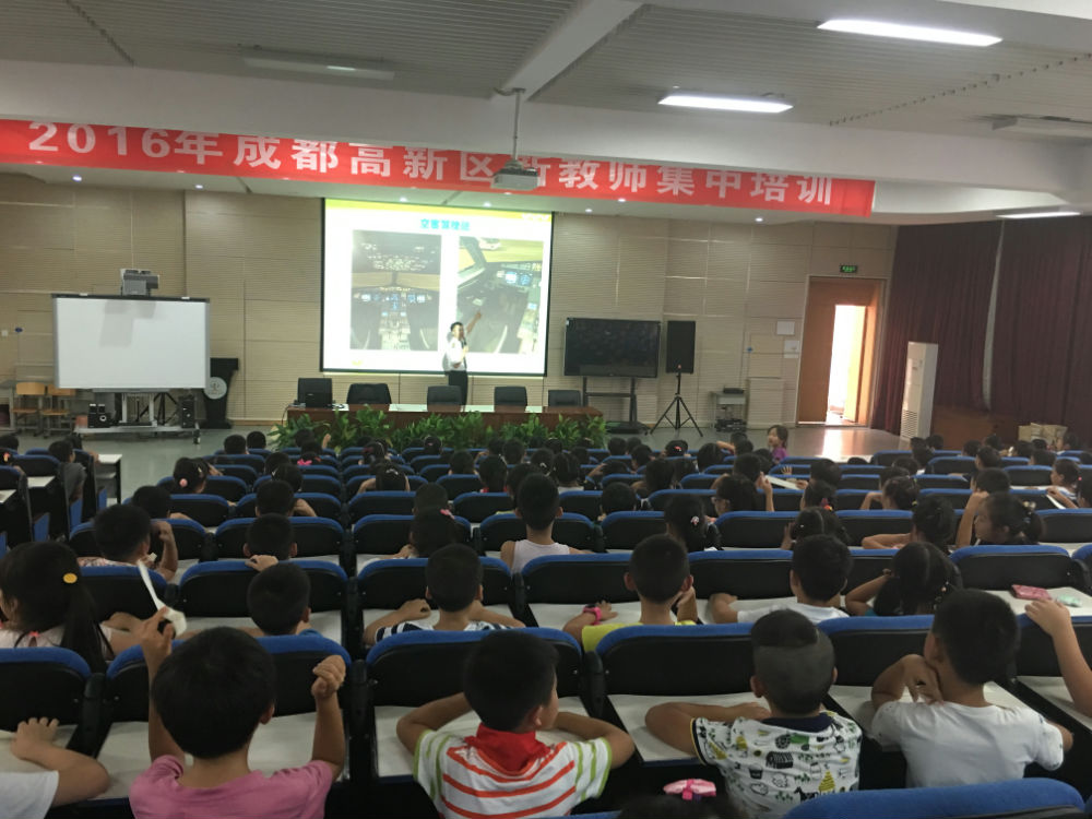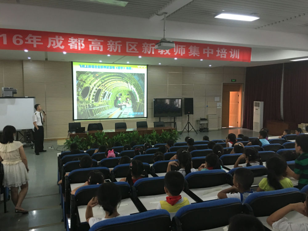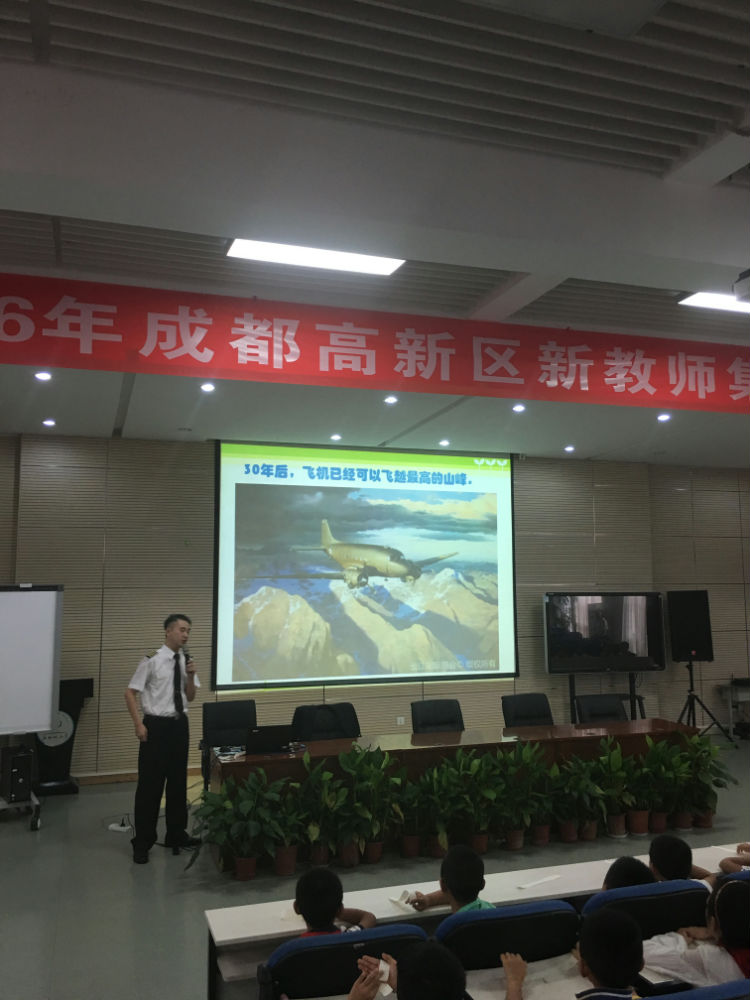 2016年9月12日下午,泡小天府多功能厅座无虚席,二年级四班穆亦辰爸爸为二年级五个班的小泡泡们带来了一堂别开生面的“飞行知识”课。