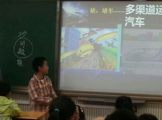 以“堵车”为例,学生正在分享有创意的解决方法