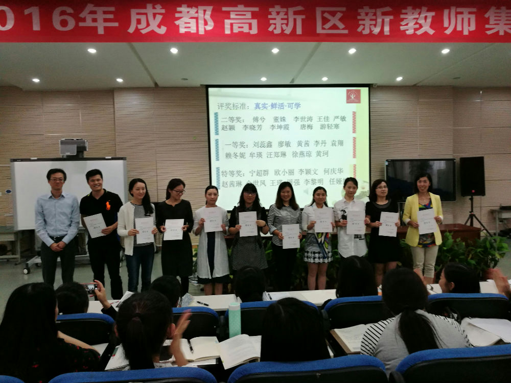 9月19日, “向同事学习”征文活动颁奖仪式在泡小天府阶梯教室隆重举行。仪式上,老师们朗读着一句句感人肺腑的挚言,潸然泪下。平时的每一天,每一个人踏着上课铃和下课铃,紧张地忙碌在各自的岗位上,没有过多的寒暄交流,没有过多的接触聚会,更多的是过道上彼此见面一个微笑、一个点头、一声“你好”!但在这群灵动的文字里,我们真真切切地感受到,我们每个人彼此间相互尊重、相互欣赏、相互学习的味道是多么浓烈!同一个泡天,同一个梦想!泡天,这个温暖的大家庭里,有一群内心充饰着独特的教育思想的教育人! 获没获奖已经不重要了,徜徉在闪耀着光芒的文字里,我们已经忘记了时间,忘记了疲惫……