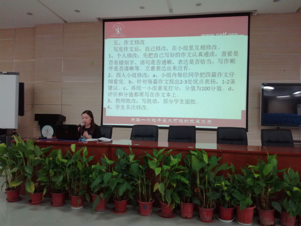 接下来,罗萍老师从整册教材和重点作文两个方面向老师们介绍了我们作文教学方面的一些经验。