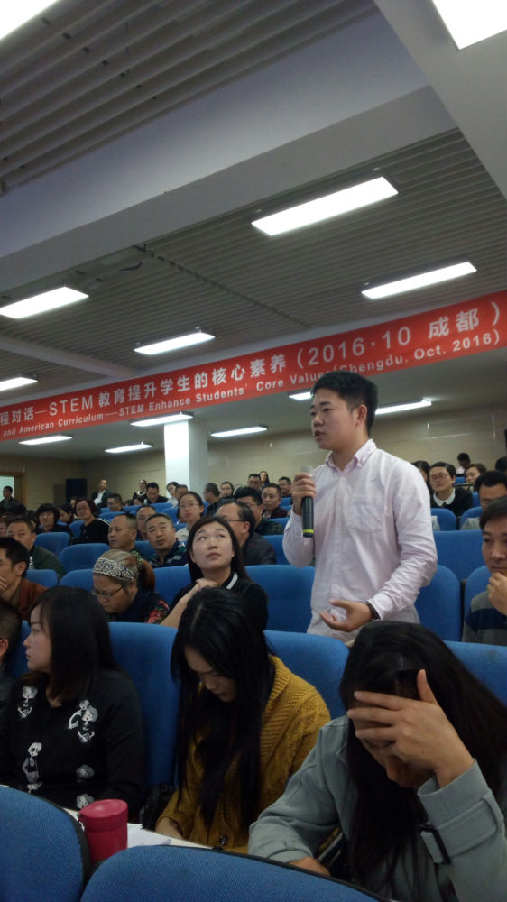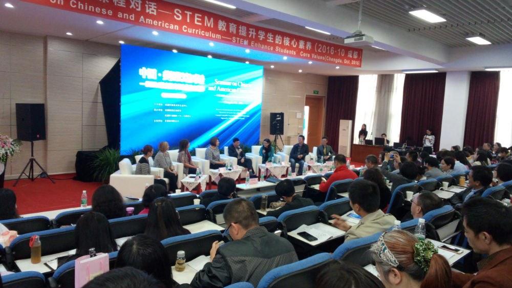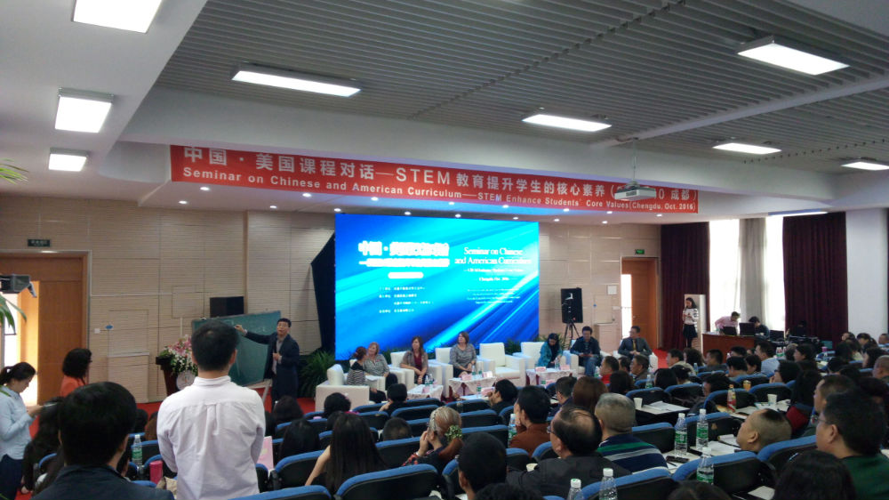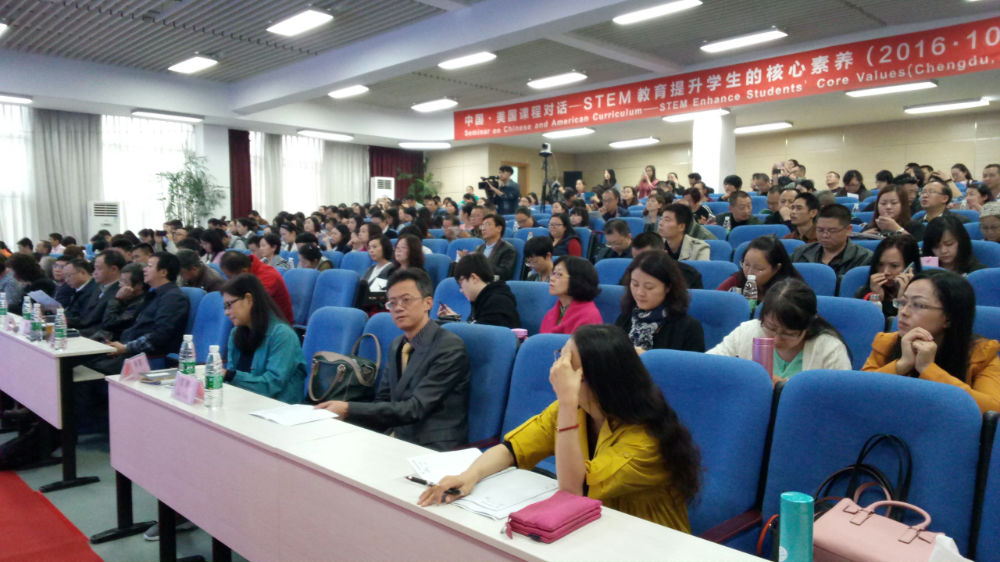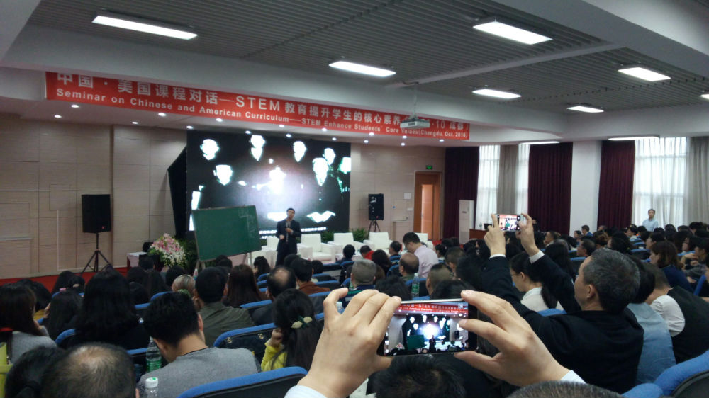 2016年10月19日,我们迎来了“中美课程对话——STEM教育提升学生核心素养研讨会”活动。此次活动由成都市教育对外交流中心主办,由成都高新区教研室、成都市泡桐树小学(天府校区 )承办,并得到了美国教育联合会的支持。参加此次会议的嘉宾分别来自成都市各区县校长、骨干教师共计300余人。