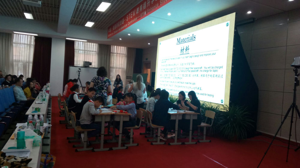 下午,先由美国专家介绍了《在4C核心素养下如何开展STEM教育》。报告回答了以下问题:如何将STEM教育融入到课程中?为什么要进行STEM教育?什么是STEM教育?STEM课程设计的基本要素以及免费课程资源的介绍,让与会者更加详细的了解美方的操作过程,也给我们提供了很多可借鉴的地方。比如设计问题/难题—学生解决现实生活中的问题、难题,而这些问题、难题并没有唯一的解决方式;探究性课程--学生需要通过对知识的调查与探究来测试、收集和分析数据;合作学习—学生合作,重新设计和改进解决方案;交流/分享成果—同学之间交流并分享他们的解决方案。这和我们目前进行的分享教学有很多的相同之处,也更加坚定了我们行走分享之路的决心。接着由美国专家提供了两节公开课。一节五年级科学课《宇宙飞船如何着陆》,一节初中二年级的科学课。课上,先介绍课堂规则,再介绍相关的名词术语,提供学习材料,让学生分组尝试,进行展示,展示之后进行反思改进,整节课学生都在探究的氛围里,不断尝试,不断改进,将科学、数学、工程、技术四个方面进行有机的结合,培养了学生的综合能力,受到参会者的高度赞扬。