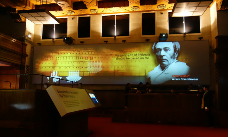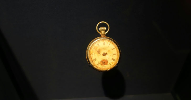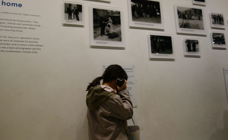 一间一片漆黑的视听室里只有一件展品:一只陪着主人一同入水而永远停止的怀表。视听室循环播放当年船难幸存者(同时也是南安居民)的口述,当时他们分别只有5岁,15岁和18岁,三个人用苍老的声音轮流讲述着自己的记忆,当年的孩子是怎样试图在每一艘临近的救生艇上搜寻自己的家人,又是怎样亲耳听到自己的母亲在船沉没后告诉自己,“从这一刻起,你永远失去你的父亲了”。