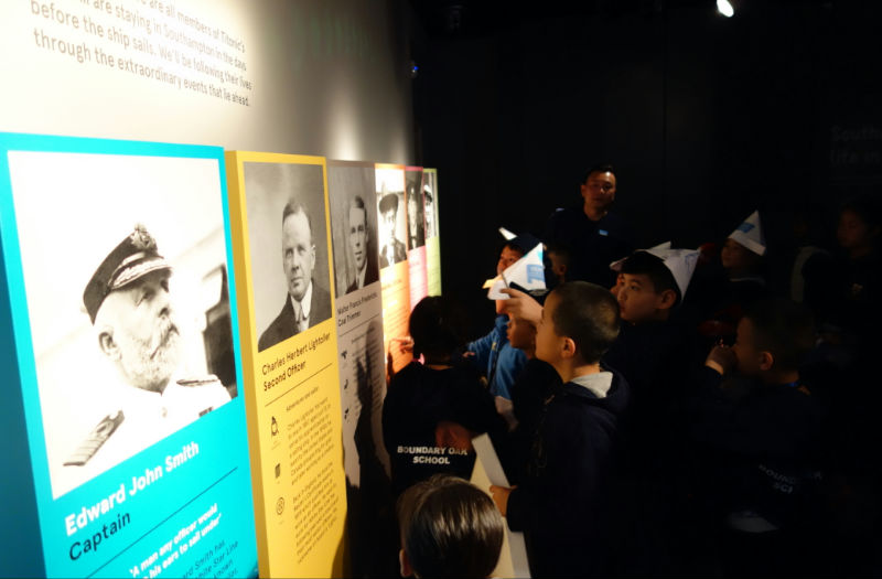在上午南安普顿Seacity博物馆的参观学习中,同学们亲身扮演,还原泰坦尼克号上的历史人物,船员、服务生、贵族、平民,当然还有船长。整个展览中他们的个人介绍不断出现:未上船时,在船上时,遇到船难时,事故发生以后……每个人的身份和所做的事情都会变化,既是以不同的视角还原这个事件,也代表了船上的每个灵魂都有着自己的故事要讲述。