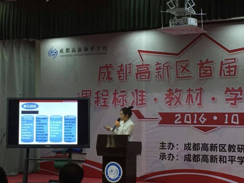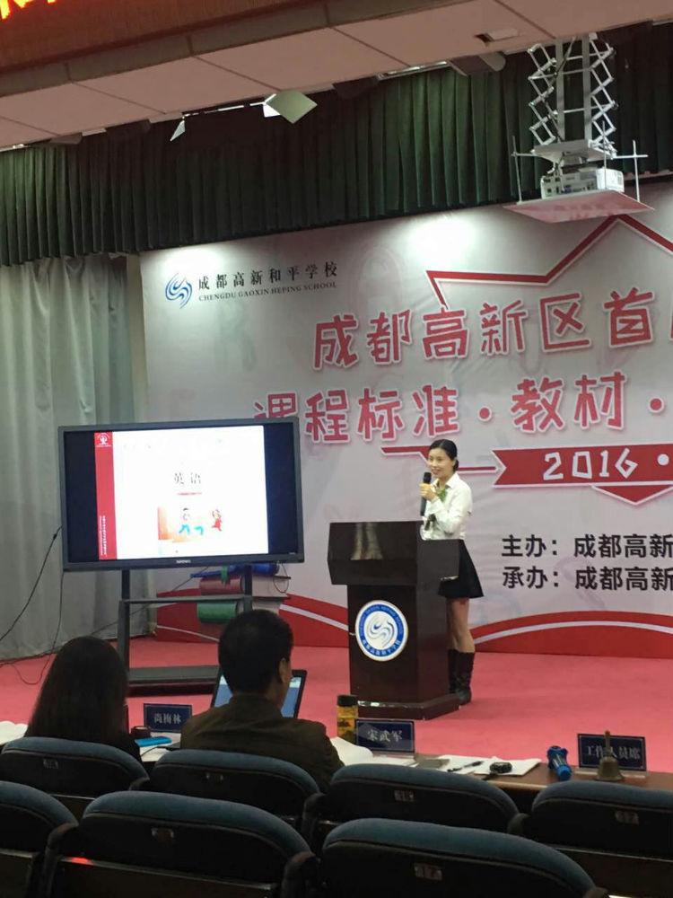 2016年10月28日上午,成都市泡桐树小学(天府校区)雍杨老师、符容老师以及李坤霞老师,代表学校英语组参加高新区首届小学英语课程标准、教材、学情解读大赛,以“发展学生核心素养,构建分享式课堂”为题,在赛场上荣获一等奖。