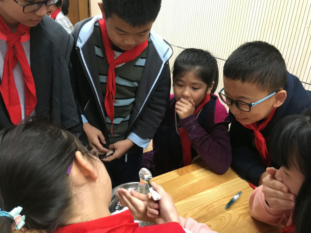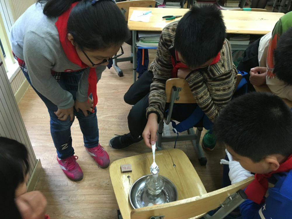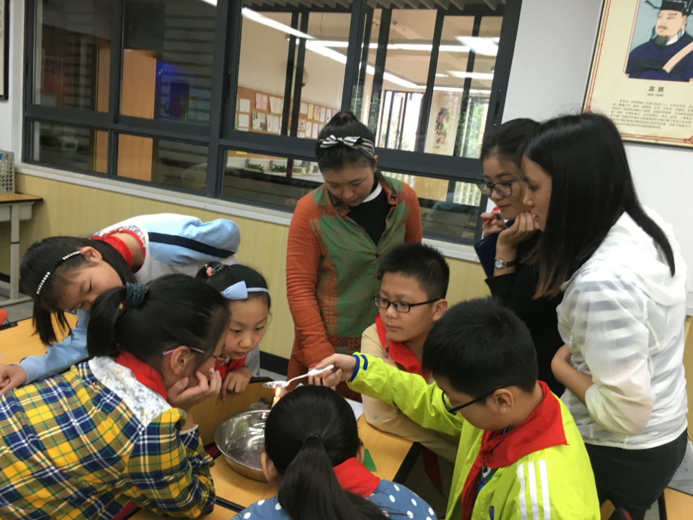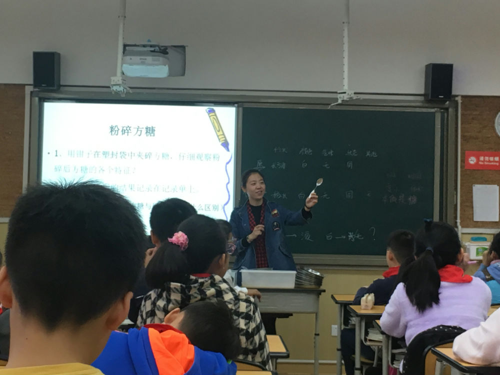 整个十月,游轻寒老师经过多轮的磨课,虚心听取专家的意见,主动向同事问不足,不断改进,不断提升。实验材料由冰糖变成方糖,在勺子上包裹锡纸来延长器具的寿命……每一个细节都考虑周全,每一句引语都反复斟酌。在这样孜孜不倦的探索中,成就了这一节引人入胜的展示课程。