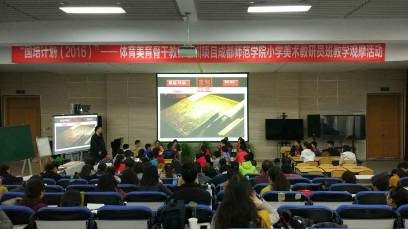 为了探索小学美术欣赏课教学模式,推进小学美术欣赏课教学模式,推进美术课堂教学的进步,促进教师专业成长,2016年11月15日上午九点,“国培计划”——美术骨干教师及全国各地的小学美术教研员一行五十余人来到我校举行了教学观摩活动,我校文化交流中心处李瑶、汪郑琳及胡冰清老师热情地接待了来访嘉宾。